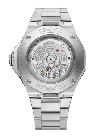 The new Riviera Azur 300m is water-resistant to 30 ATM – 300 meters, or 984 ft – and is available in two versions to become your elegant sports companion of the summer. Its look is forthright, assertive, and impactful. In order to calculate diving times, the two new models – M0A10716 and M0A10717 – are suitably topped with a unidirectional rotating bezel in polished and sun-satin stainless steel. The bezel features a design like none other with a (blue or black) lacquered treatment that marks the gradation of the first fifteen minutes. Whether for swimming, jet-skiing, sailing, snorkeling or surfing, the Riviera is ready for offshore adventure. This is the ideal watch for water sports, a companion in every leisure activity. Another detail that makes all the difference is that the bezel is equipped with a blue or black anodized aluminum ring to guarantee optimal use and precise handling. Its luminescent indexes are coated in SuperLuminova to increase their visibility underwater.